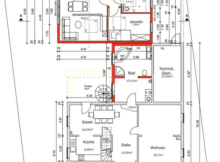 - Bestandswohnfläche: Erdgeschoss ca. 120 m², Obergeschoss ca. 80 m²