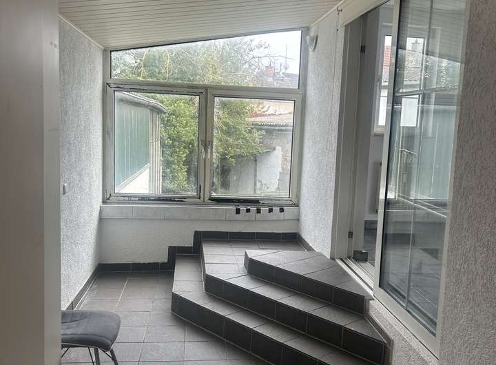 Im Hinterhaus ist es auf 2 Wohnungen aufgeteilt. EG: 3 Zimmer mit Küche und Badezimmer, ca. 80 Quadratmeter. 1.OG + DG: 5 Zimmer mit Küche, Bad und Wintergarten, ca. 100 Quadratmeter.