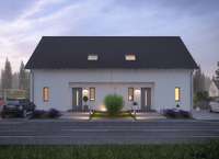 Das Doppelhaus beeindruckt mit seiner Wohngrundfläche von ca. 125 m² und lässt eine geschickte Raumaufteilung für die Verwirklichung individueller Wünsche zu. Im Erdgeschoss wurde der Wohn- und Essbereich und die Küche gekonnt miteinander verbunden. Im Obergeschoss unter dem Satteldach befinden sich ein Elternschlafzimmer, zwei Kinderzimmer sowie ein gemeinsames Badezimmer. Eine Dreifachverglasung der Fenster zusammen mit der energieeffizienten Bauweise sorgen für niedrige Nebenkosten.