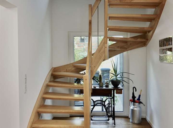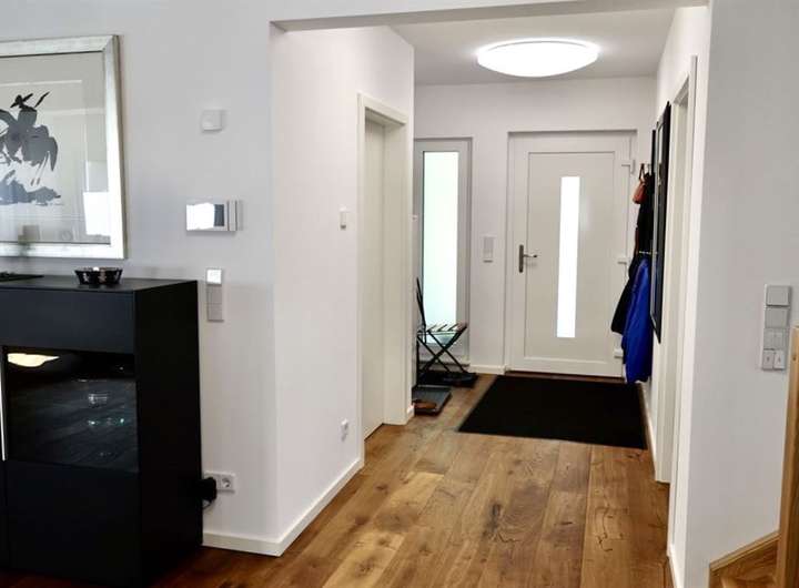 - Boden im Erdgeschoss mit massiven Eichendielen verlegt