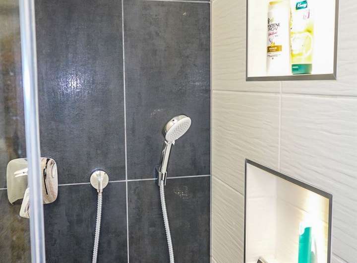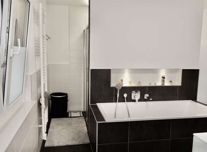 - eines von diesen ein Masterbad mit großer bodenebener Dusche, Badewanne, doppelte Waschbecken, elektr. Handtuchwärmer, vom Hauptschlafzimmer begehbar