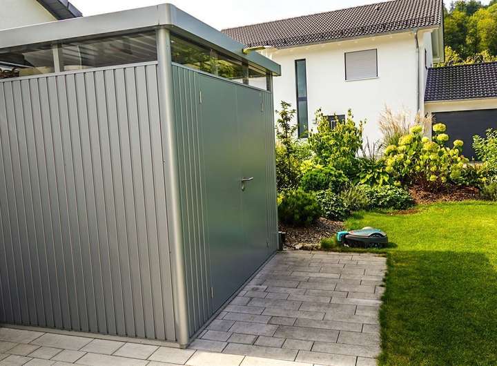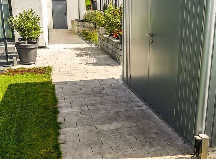 Ihre Autos und auch die wertvollen Fahrräder parken bequem in einer übergroßen Garage, zudem gehören vier weitere Außenstellplätze zum Objekt. Für Gartengeräte etc. gibt es ein hochwertiges Garten-Häuschen zur Verfügung.