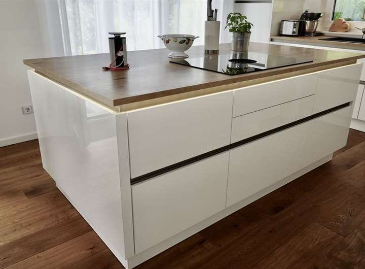 - maßgeschneiderte, offene System-EBK, Kochinsel mit BORA-Abzug, hochwertige Ausstattung