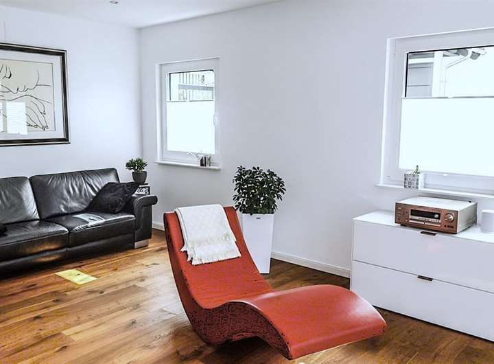 Der Boden im gesamten Wohnbereich/Erdgeschoss ist durchgehend mit massiven Eichendielen ausgelegt und unterstreicht eindrucksvoll die Großzügigkeit. Durch die extrem hellen Räume, durch die auffallend zahlreichen und großen, teils bodentiefen, 3-fach verglasten Fenster und Glastüren mit Lichtkorridoren sowie die nach Südwesten ausgerichtete Terrasse mit Grünfläche, lassen die Räume in Licht erstrahlen; es verschwimmen fließend die Grenzen zwischen außen und innen und es entsteht ein grenzenloses, offenes Wohngefühl auf höchstem Standard.