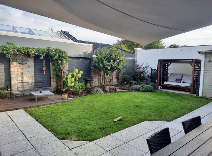 Dieser sehr gepflegte Reihenbungalow mit einer Gesamtwohnfläche von ca. 133 m² überzeugt durch seine großzügige Raumaufteilung, ein sonniges Gartengrundstück und viele durchdachte Details – ideal für Familien, Paare oder alle, die komfortables Wohnen auf einer Ebene suchen.