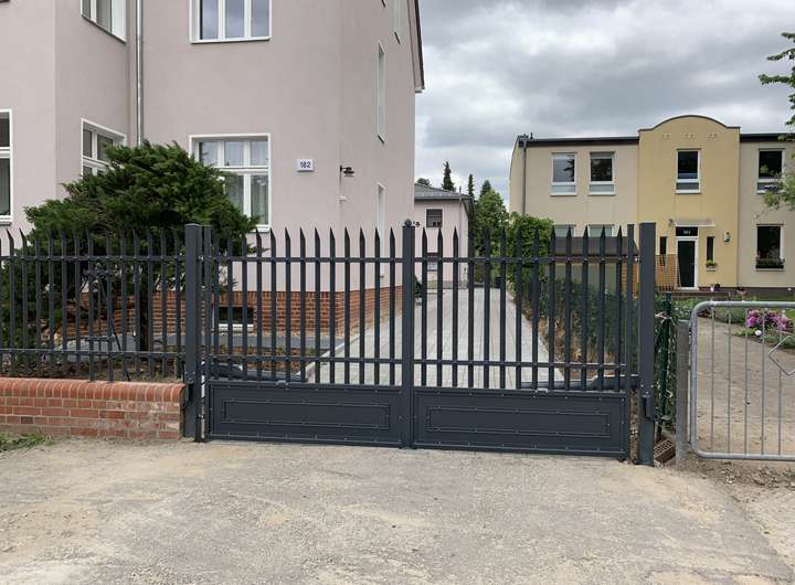 Das abgeschlossene Grundstück hat eine elektrische Toreinfahrt und eine Videosprechanlage.