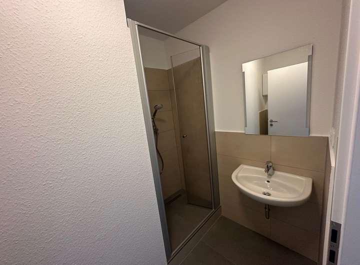 Alle Räume sind mit einem hochwertigen Vinylboden sowie stilvollen weißen Raufasertapeten ausgestattet. Das Badezimmer besticht durch moderne Fliesen in Beige- und Grautönen. Zudem gehört zur Wohnung ein Stellplatz, der optional angemietet werden kann, sowie ein geräumiger Keller, der zusätzlichen Stauraum bietet.