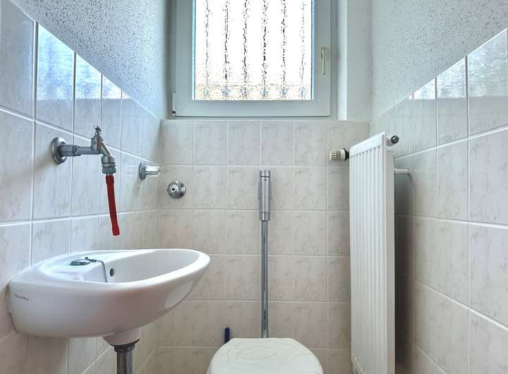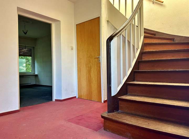 Das Einfamilienhaus ist leerstehend und bedarf umfassender Sanierungsmaßnahmen. Die Grundrisskonzeption ist zwar auch nach über 60 Jahren ansprechend, jedoch sollte ein Abriss & Neubau ebenfalls in Erwägung gezogen werden.
