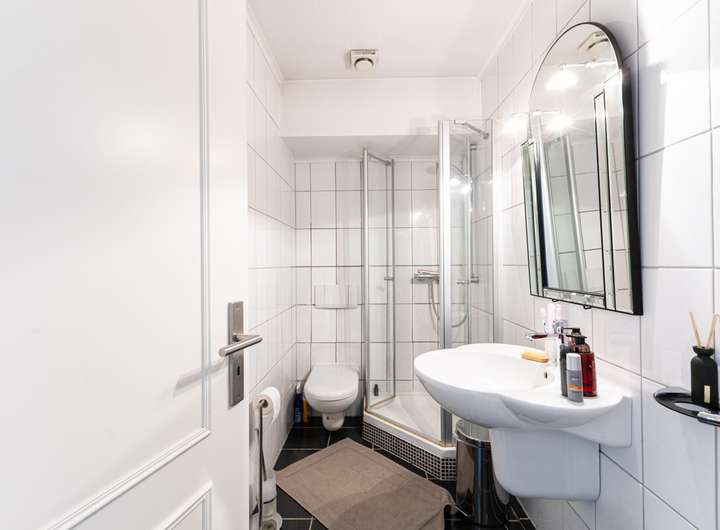 Auch der Keller überrascht mit wohnlichen Räumen: Hier stehen Ihnen ein weiteres Bad, zwei große Zimmer – aktuell als Büro und Schlafzimmer genutzt –, sowie zahlreiche Abstellflächen zur Verfügung. Die Deckenhöhe von ca. 2,30 m sorgt für angenehmes Wohngefühl, während die Beheizung auch im Kellerbereich viel Komfort bietet. Die moderne Viessmann-Gasheizung, Fußbodenheizung im gesamten Erdgeschoss und die beiden Bäder im Obergeschoss unterstreichen die Wertigkeit der Immobilie.