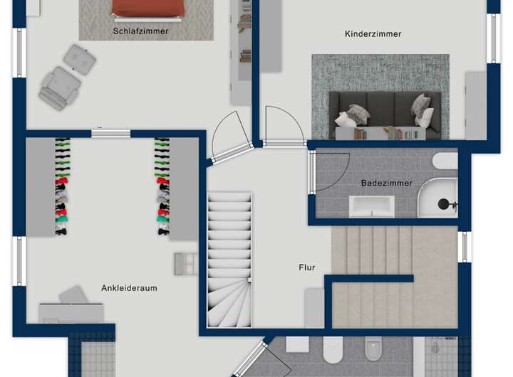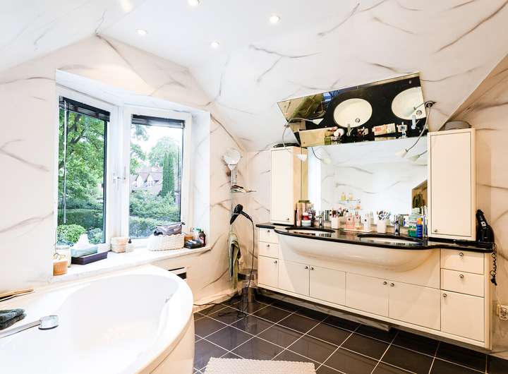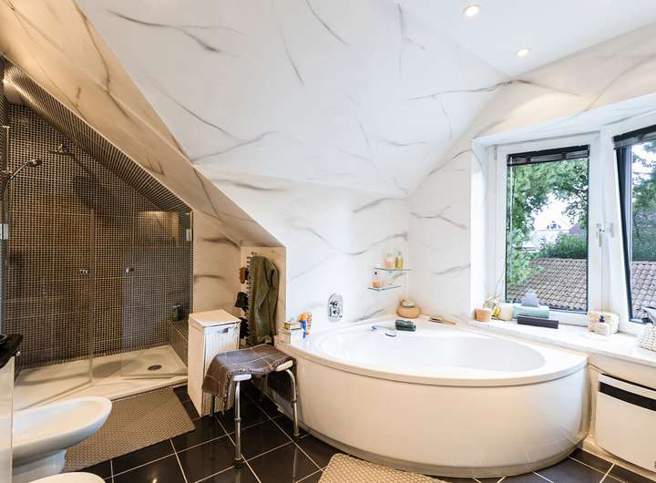 Im Obergeschoss erwartet Sie ein modernes Duschbad, ein Hauptschlafzimmer mit Ankleidebereich und Ensuite-Vollbad auf Sie. Das zusätzliche Kinder- oder Gästezimmer rundet diese Etage ideal ab. Das weitere Zimmer im Dachgeschoss (Hobbyfläche) wurde 2011 mit einer festen Treppe errichtet, mit zeitgemäßen Dachfenstern und weiterem Stauraum versehen. So entstehen flexible Nutzungsmöglichkeiten – ganz nach Ihren Bedürfnissen.