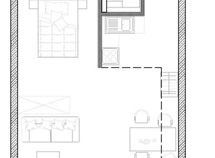 Küche / Essen / Wohnen / Schlafen mit Zugang zum