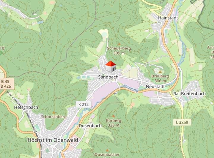 Das Objekt liegt in Sandbach, einem Stadtteil von Breuberg im Odenwaldkreis.