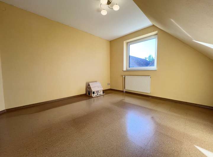 Das Dachgeschoss beherbergt drei gut geschnittene Schlafzimmer sowie ein geräumiges Badezimmer mit Dusche und Badewanne – ideal für Familien oder Paare mit Platzbedarf.