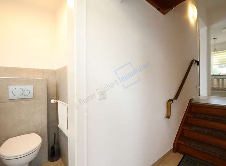 Das freistehende Einfamilienhaus wurde 2019 umfangreich saniert. Erdgeschoss: # 2 Zimmer # abgeschlossene Küche inkl. EBK # Gäste-WC # Terrasse, teilweise überdacht Obergeschoss: # 2 Zimmer # 2 Tageslichtbäder mit Dusche # Waschmaschinenanschluss in einem Bad # Balkon mit Markise Kellergeschoss: # große Garage für PKW mit Anbau als Geräteschuppen # Seitenanbau mit drei Räumen, je separate Eingänge (Werkstatt, Abstellen, etc.) # Satteldach, nicht ausgebaut, voll ausbaufähig # Gas-Zentralheizung, Buderus Bj. 2019 # Kunststofffenster, 2-fach verglast # Vinyl- und Fliesenboden # SAT-Anlage # vollunterkellert # Dämmung zwischen Ober- und Dachgeschoss, 2018 # Wasserleitungen komplett erneuert, Leitungen im Keller gedämmt # komplette Elektrik erneuert inkl Sicherungen / Unterverteilung, 2019, Schalter und Steckdosen von Gira # Eingangstür erneuert 2019 # Wasserenthärtungsanlage, REISSERtech # Siedle Sprechanlage # Innenputz für alle Räume, Kalkputz mit Silikatfarbe # Massivbauweise # Baujahr 1927, Umbau 1963 # teilweise neu verputzt und gestrichen 2025 # frei Alle genannten Angaben zum Objekt beruhen auf den Angaben des Eigentümers. Die gezeigten Grundrisse stellen ausschließlich Illustrationen im Rahmen der Vermarktung dar. Die tatsächliche Bauausführung, Genehmigungsstände u.Ä. gehen daraus nicht hervor. Die aus den Grundrissen hervorgehenden Informationen haben keinen Anspruch auf Vollständigkeit oder Richtigkeit und sind nicht rechtsverbindlich.