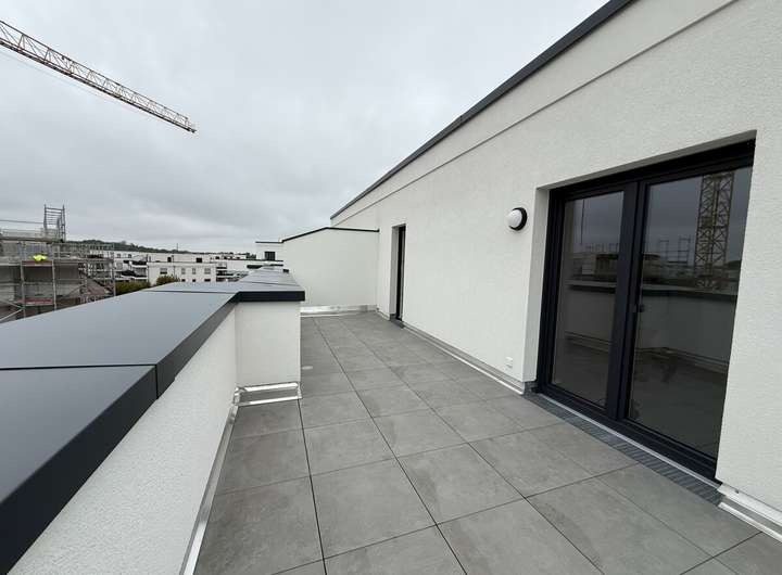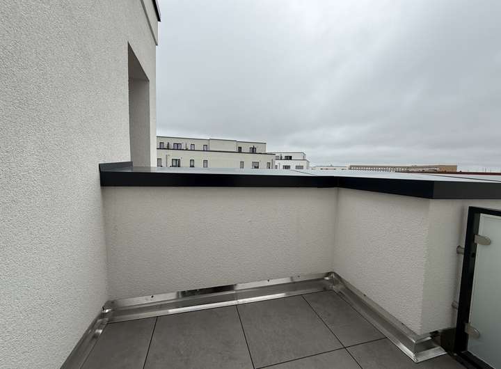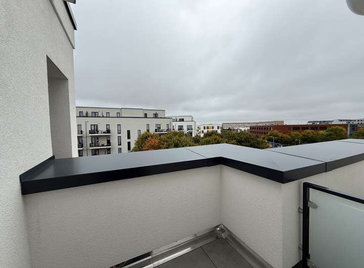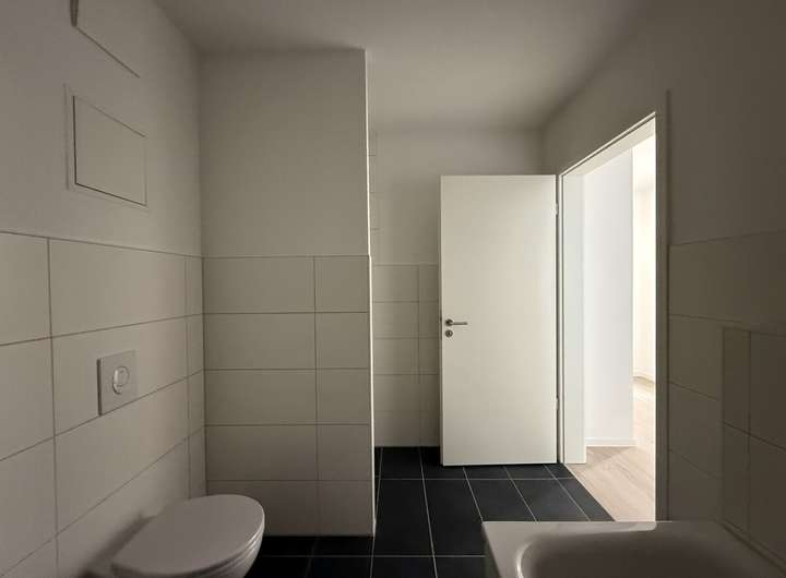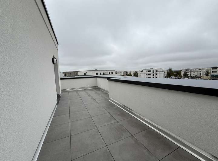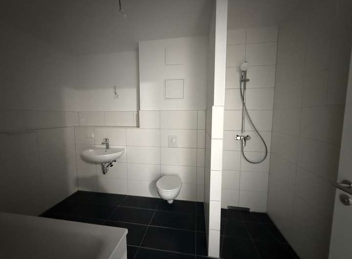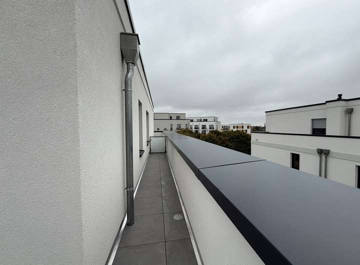 Ein besonderes Highlight ist die großzügige Süd-/Südwest-Terrasse (ca. 28 m²), die zum Entspannen und Verweilen einlädt. Von hier aus genießen Sie einen weiten Blick über die gepflegte Wohnanlage. Das modern geflieste Badezimmer ist mit einer Badewanne, einer ebenerdigen Dusche sowie einem Hänge-WC ausgestattet und präsentiert sich in zeitgemäßem Design.