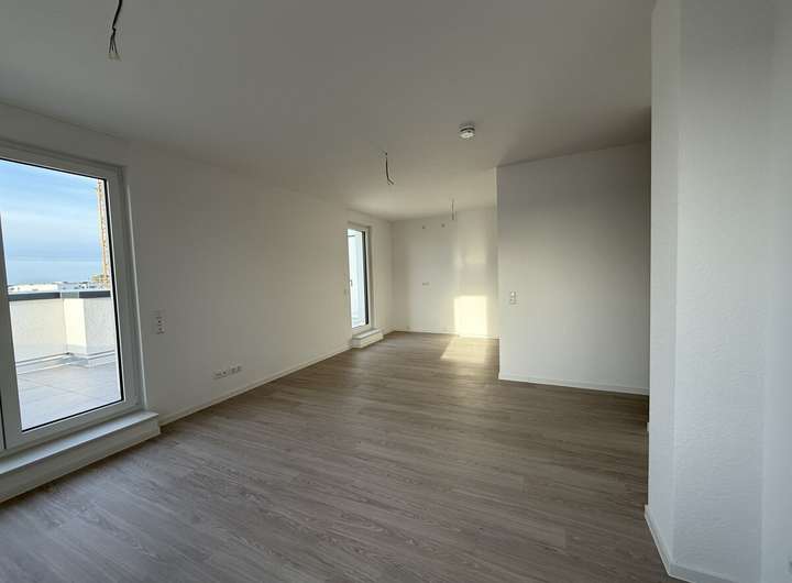 Die angebotene Wohnung befindet sich in der 3. Etage (Dachgeschoss) und ist bequem mit dem Aufzug erreichbar. Sie überzeugt durch eine durchdachte und funktionale Raumaufteilung. Vom Flur aus gelangen Sie in das offen gestaltete Wohnzimmer (ca. 27 m²) mit integrierter Küchenecke, das geräumige Kinderzimmer (ca. 12 m²), das Schlafzimmer mit kleinem Balkon sowie das innenliegende Badezimmer.