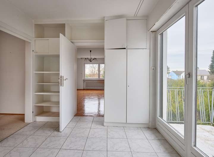 Das 1965 erbaute Einfamilienhaus in Nieder-Erlenbach, einem beliebten Stadtteil von Frankfurt, bietet auf einem etwa 649m² großen Grundstück eine ruhige Feldrandlage mit einem schönen Blick ins Grüne. Das Haus ist sanierungsbedürftig, bietet dennoch eine solide Basis für Ihre individuellen Gestaltungsmöglichkeiten. Das Erdgeschoss des Hauses schließt eine Diele, ein Tageslicht Gäste-WC, eine Küche, einen Wohn- und Essbereich mit Kamin sowie ein Schlafzimmer ein. Der Wohnbereich hat zudem einen Zugang zur Terrasse, was eine Verbindung zum Außenbereich schafft und den Wohnkomfort erhöht. Im Obergeschoss finden sich ein Tageslicht-Dusch- und Wannenbad, ein Büro, ein Ankleidezimmer mit Balkon sowie zwei weitere Schlafzimmer. Dies ermöglicht eine funktionale Nutzung der Räumlichkeiten, wobei der Balkon im Ankleidezimmer einen zusätzlichen charmanten Aspekt darstellt. Das Dachgeschoss ist ausgebaut und dient als Nutzfläche, was flexiblen Raum für unterschiedliche Zwecke bietet. Weiteren Stauraum und Abstellräume finden sich im Keller des Hauses.