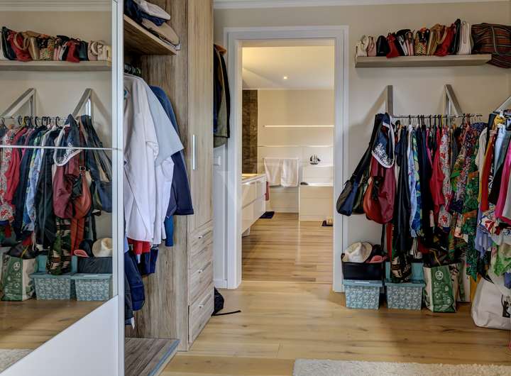 Der private Elternbereich im OG ist klar vom Kindertrakt getrennt und begeistert mit Ankleide, Schlafzimmer und einem stilvollen Masterbad, das mit Doppelwaschtisch, Dusche, Badewanne, Bidet und stimmungsvoller Beleuchtung ausgestattet ist.