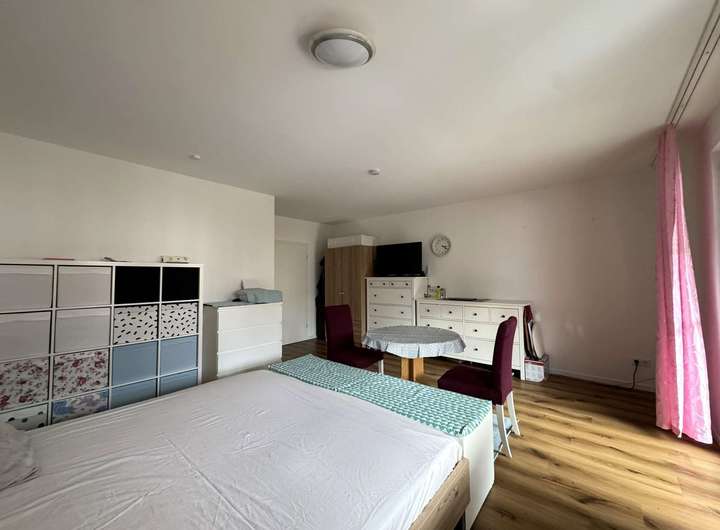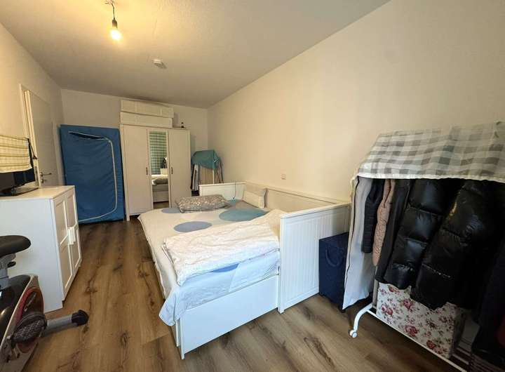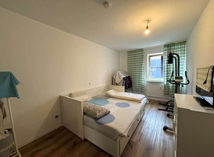 Das Schlafzimmer bietet dank seiner angenehmen Größe vielfältige Einrichtungsmöglichkeiten und schafft eine ruhige Rückzugsoase. Das Badezimmer ist mit einer Badewanne ausgestattet und wirkt gepflegt sowie funktional.