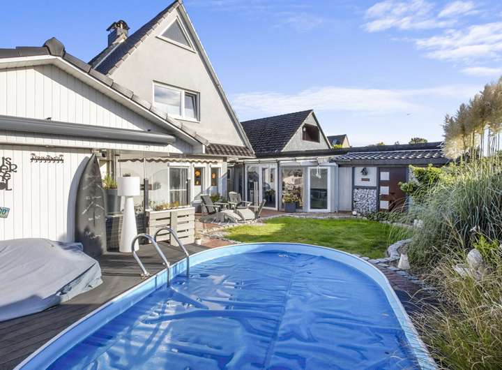 Das freistehende Einfamilienhaus wurde 1969 erbaut und über die Jahre mit viel Liebe zum Detail modernisiert und erweitert. Auf einer Wohnfläche von rund 140m² bietet das Haus großzügigen Raum für Familien, die Wert auf Komfort und Individualität legen.
