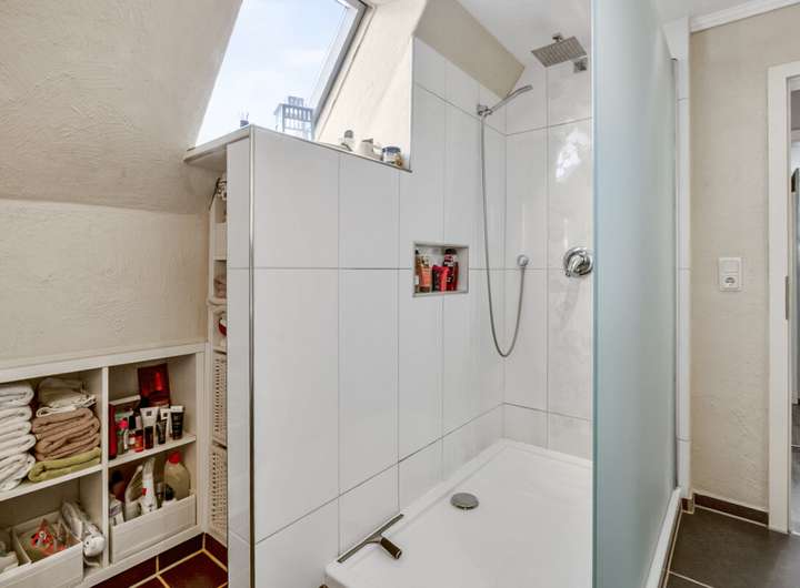 + Saniertes Duschbad mit Fußbodenheizung, Fenster und ebenerdiger Dusche
