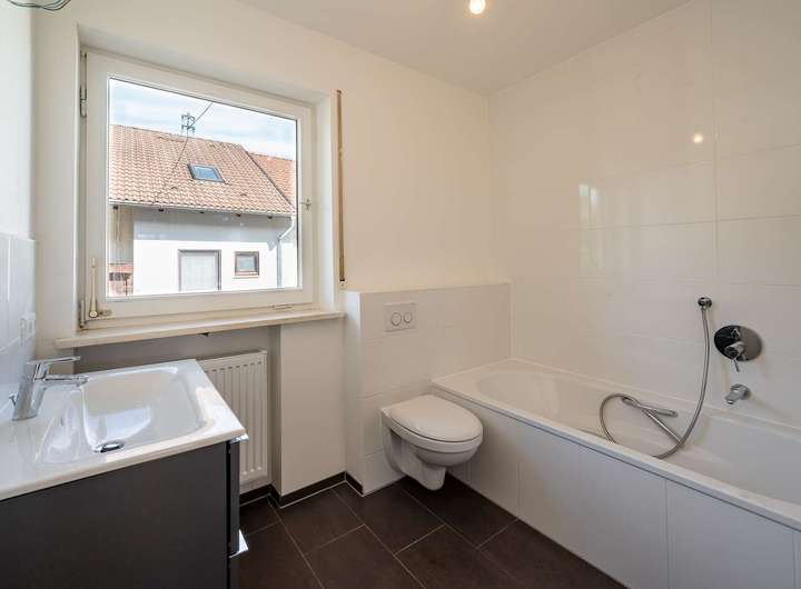 Das Tageslichtbad wurde gerade vollständig renoviert und verfügt über Badewanne, Waschtisch und WC.