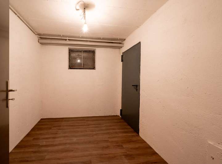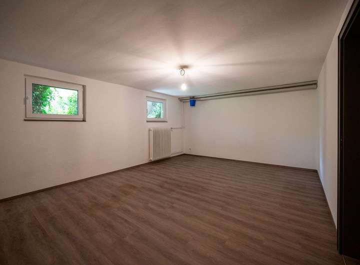 Im Keller gibt es einen großen beheizten Hobbyraum, der über zwei Fenster ebenerdigen Ausblick zum Garten gewährt. Aufgrund der Belichtung und der Raumhöhe kann dieser Raum gut zu Wohnzwecken genutzt werden.