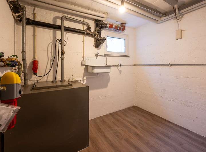 Weiterhin gibt es eine Waschküche, einen weiteren Lagerraum und einen Heizungsraum. Hier befindet sich die Ölheizung. Heizkosten sind in den Nebenkosten nicht enthalten. Heizöl ist vom Mieter selbst zu beschaffen. Bei einem 4-köpfigen Haushalt kann man von etwa 1.200 - 1500 l Heizöl pro Jahr ausgehen, d.h. ca. 100 Euro monatlich.