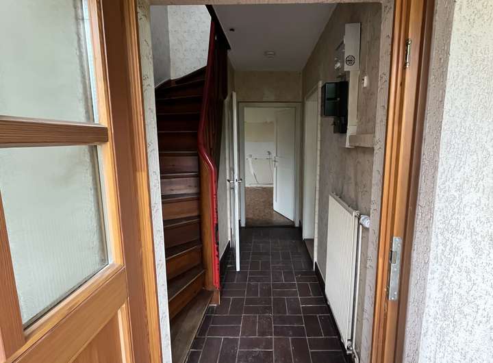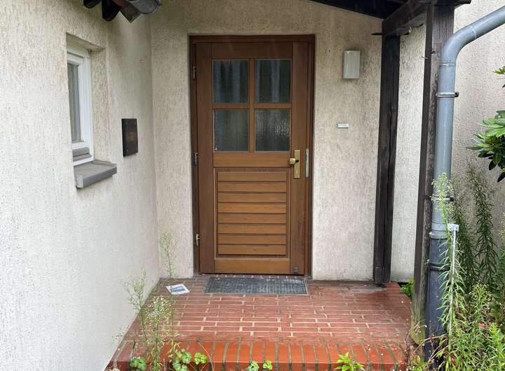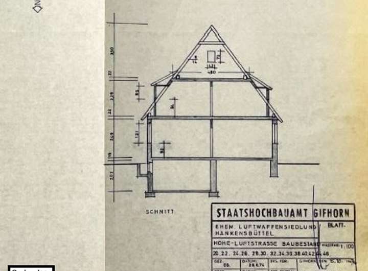 Die zweigeschossige Doppelhaushälfte wurde 1937 in Massivbauweise errichtet und verfügt über einen Keller und einen Spitzboden.