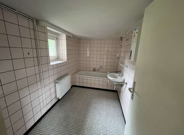 Im Erdgeschoss befindet sich neben dem offenern Wohn-/Essbereich eine Küche mit Durchgangszimmer zum Anbau. Im Anbau befindet sich ein Flur mit Zugang zum Garten, ein Badezimmer mit Wanne (letzte Badsanierung 2020) und ein Raum mit WC.