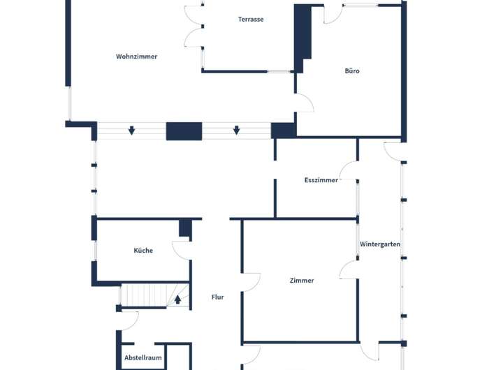 Alle weiteren Zimmer sind vom Flur aus zu erreichen. Die Einbauküche mit ihren neuwertigen Miele Einbaugeräten und der großen Arbeitsfläche erfreut Kochenthusiasten. Vom Schlafzimmer mit seinem eigenen Ankleidebereich sowie zwei weiteren Zimmern besteht Zugang zum Wintergarten mit vielfältiger Nutzungsmöglichkeit.
