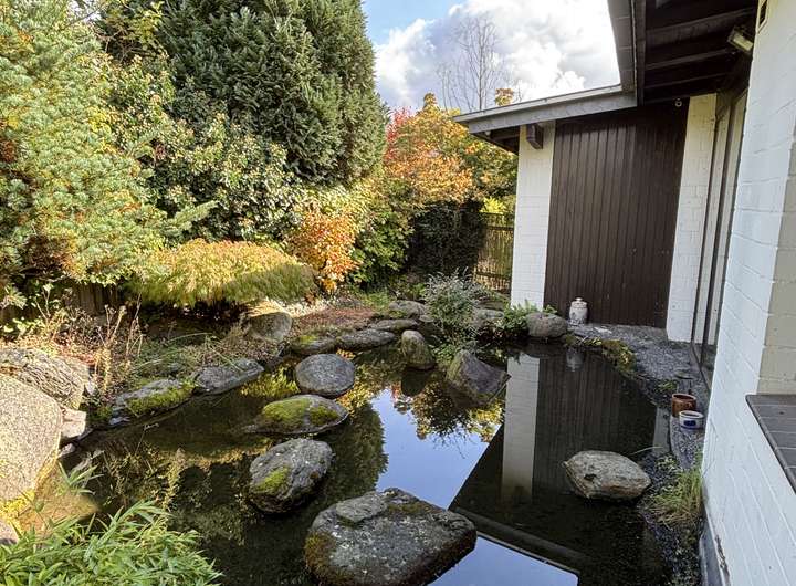 Großzügiges Architektenhaus mit Kamin und japanischem Wassergarten