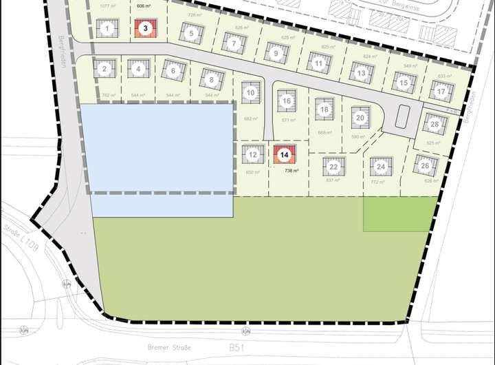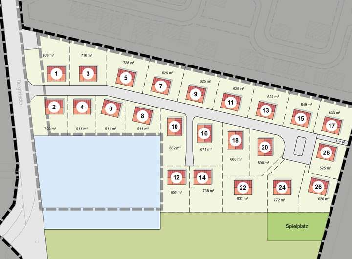 Insgesamt sind hier 23 Baugrundstücke entstanden. Das vorgesehene Baugrundstück hat eine Größe von 738 m².