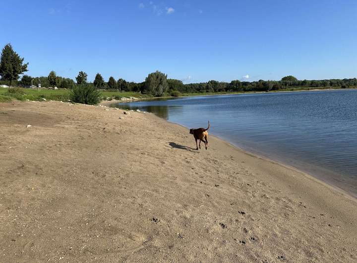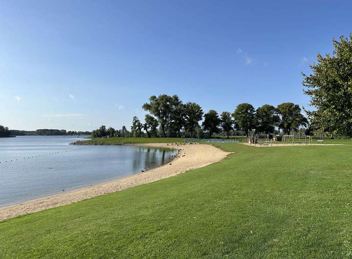 Es liegt in zentraler Lage am Badesee Rhederlaag in Lathum.