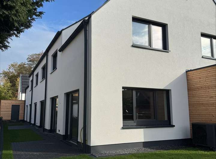 Die dritte Einheit dieses frisch erbauten Reihenhauses ist ein Endhaus mit etwas mehr Privatsphäre.