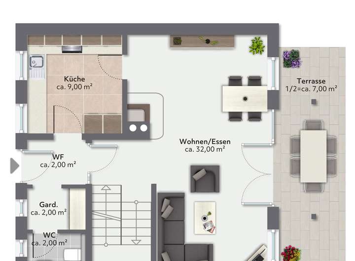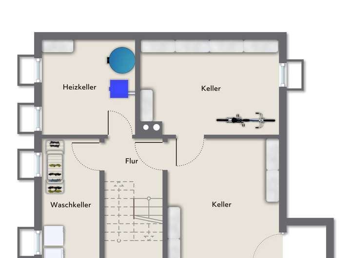 - Bad (Fenster, Wanne, Dusche, WC, Waschtisch, Fußbodenheizung)