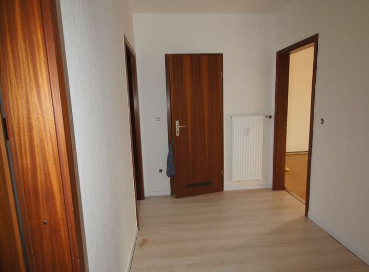 Vom zentralen Flur aus gehen alle Räumlichkeiten ab. Das geräumige Schlafzimmer liegt zur ruhigen Hofseite.