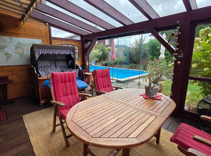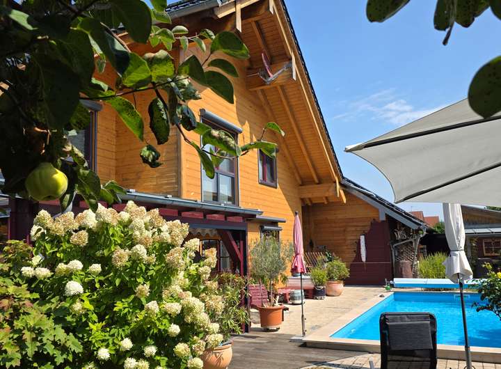 Bezauberndes Niedrigenergie-Holzhaus mit Pool