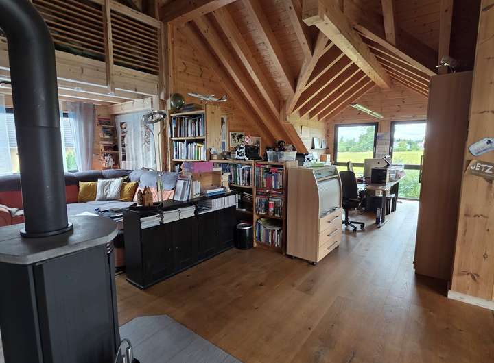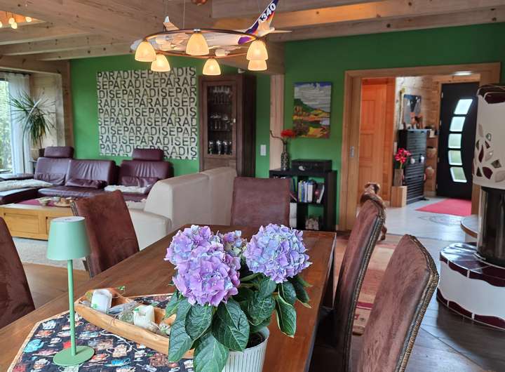 Als echtes Niedrigenergie-Holzhaus setzt dieses Juwel auf höchste Energieeffizienz: Eine 14,4 kW Photovoltaik-Anlage auf dem Dach mit Einspeisung (noch 5 Jahre Laufzeit) generiert jährlich rund 5.000 € Einnahmen. Die Zentralheizung via Wärmepumpe hält die Heizkosten gering – und für kuschelige Abende können Sie zusätzlich mit Holz heizen: Der Kachelofen im Wohnzimmer und der charmante Schwedenofen im Obergeschoss sorgen für gemütliche Wärme. Nachhaltigkeit und Energieeffizienz: Zukunftssicher und kostensparend