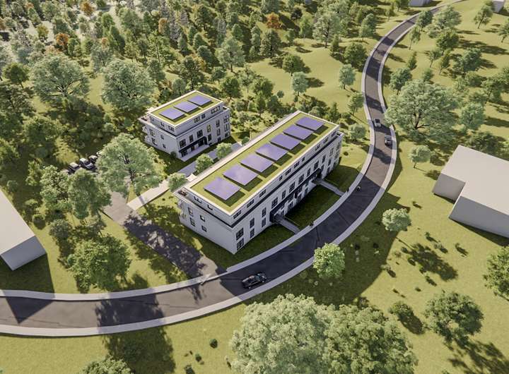 Das Gebäude erfüllt den KfW-Standard 40 und steht somit für Energieeffizienz, Nachhaltigkeit und zukunftsorientiertes Bauen.