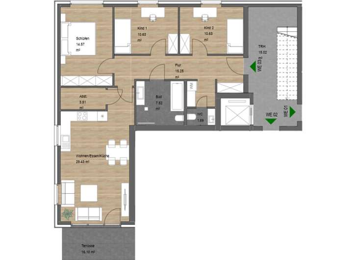 Qualität und Komfort sind in den hochwertigen Wohnungen von ca. 68 m² bis ca. 111 m² Wohnfläche ideal vereint.