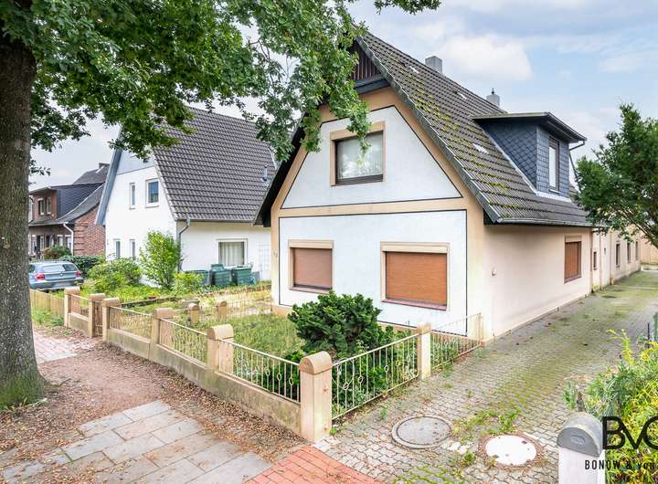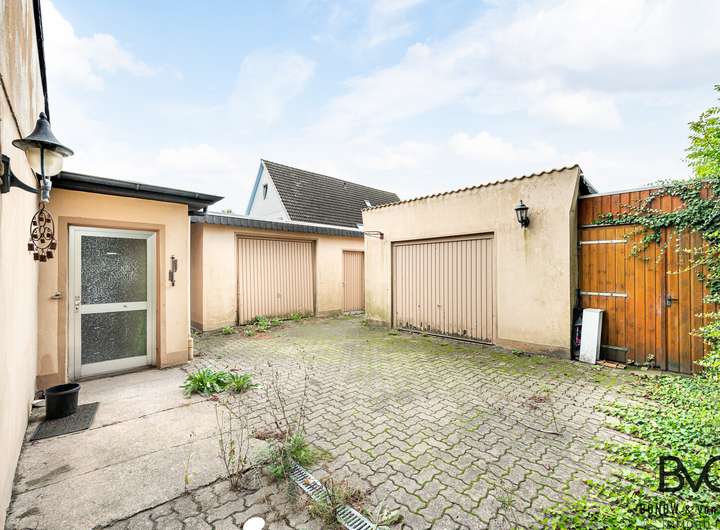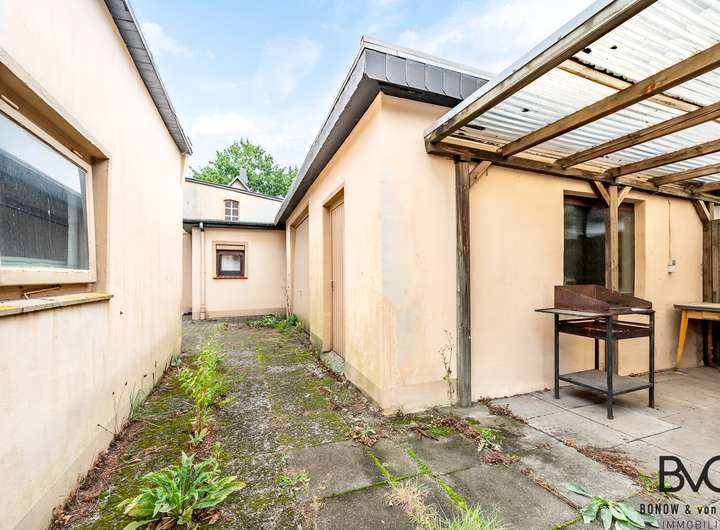 Das Grundstück ist insofern erschlossen, dass das darauf befindliche Einfamilienhaus (Baujahr ca. 1919) mit einer Wohnfläche von ca. 175 m² sowie mehrere Nebengebäude über Gas, Zu- und Abwasser, Strom und weitere Versorgungsleitungen verfügt.