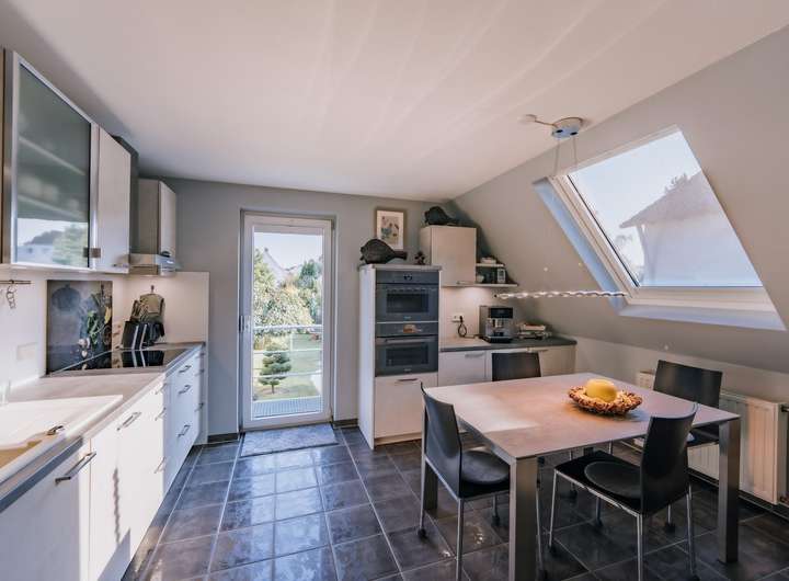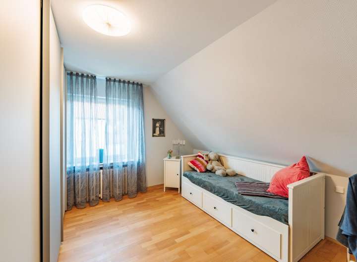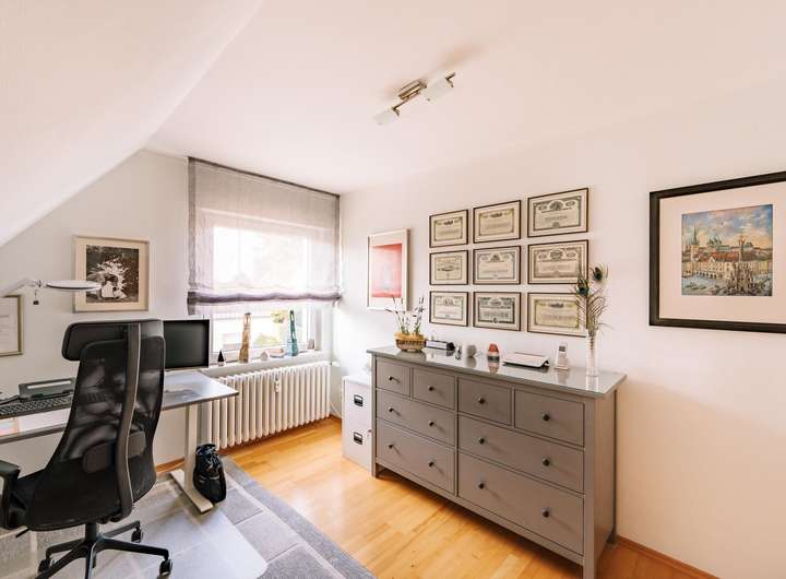Vorbehaltlich der Genehmigung des Bauamts könnte im Bereich des Spitzbodens oberhalb der Küche noch ein weiteres Zimmer mit der Grundfläche von ca. 4,3 X 5,65 m ausgebaut werden.