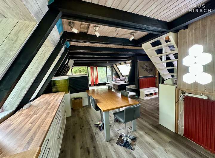 Das freistehende Einfamilienhaus beeindruckt mit einem großzügigen offenen Wohn-Essbereich, der zum gemütlichen Beisammensein einlädt. Die Einbauküche bietet mit großen Fenstern und warmen Holzoberflächen ein angenehmes Wohngefühl. Der Highlight des Hauses ist das große lichtdurchflutete Wohnzimmer mit einem besonderen Kamin, der nicht nur für wohlige Wärme sorgt, sondern auch eine behagliche Atmosphäre schafft. Hier können Sie unvergessliche Momente mit Ihren Liebsten verbringen und entspannt den Abend ausklingen lassen.