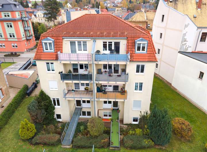 Einzigartige Kapitalanlage mit Seltenheitswert in Gößnitz Willkommen zu einer außergewöhnlichen Investitionschance in zentraler Lage von Gößnitz: In der Goethestraße 9 präsentiert sich dieses gepflegte Mehrfamilienhaus mit acht vollvermieteten Wohneinheiten als solide und renditestarke Kapitalanlage. Das Gebäude überzeugt durch seine funktionalen Grundrisse, ein angenehmes Wohnambiente und eine nachhaltig gute Vermietbarkeit. Einkaufsmöglichkeiten, Schulen und öffentliche Verkehrsmittel befinden sich in unmittelbarer Nähe – ein klarer Pluspunkt sowohl für Kapitalanleger als auch für Eigennutzer. Jede Wohneinheit bietet im Erdgeschoss einen direkten Zugang zum gemeinschaftlichen Garten. In den oberen Etagen laden Balkone zum Verweilen ein. Zusätzlich verfügt jede Einheit über einen privaten Kellerraum. Gepflegte Grünflächen mit Rasen und blühender Bepflanzung sowie gepflasterte Zufahrten und Wege runden das harmonische Gesamtbild ab. Das Besondere: Das Mehrfamilienhaus kombiniert moderne Haustechnik mit einer durchdachten Raumaufteilung. Zwei Maisonettewohnungen im Erdgeschoss sowie sechs 3-Zimmer-Wohnungen mit Balkon bieten ein Wohnangebot, das im regionalen Vergleich kaum zu finden ist. Für Kapitalanleger besonders attraktiv: Das Objekt ist vollständig vermietet und bietet separate Kellerboxen, Abstellräume und einen Fahrradraum. Die 2013 erneuerte Brennwerttherme sowie die moderne Wasseraufbereitung gewährleisten eine sichere und zukunftsfähige Investition. Fazit: Eine seltene Gelegenheit in Gößnitz – solide, gepflegt, vollvermietet und mit starkem Renditepotenzial.