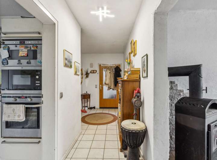 Das Haus wurde zuletzt im Jahr 1998 modernisiert. Die Ausstattung ist praktisch und funktional, perfekt für ein komfortables Wohnen. Die Böden sind mit Laminat in Fliesenoptik versehen.