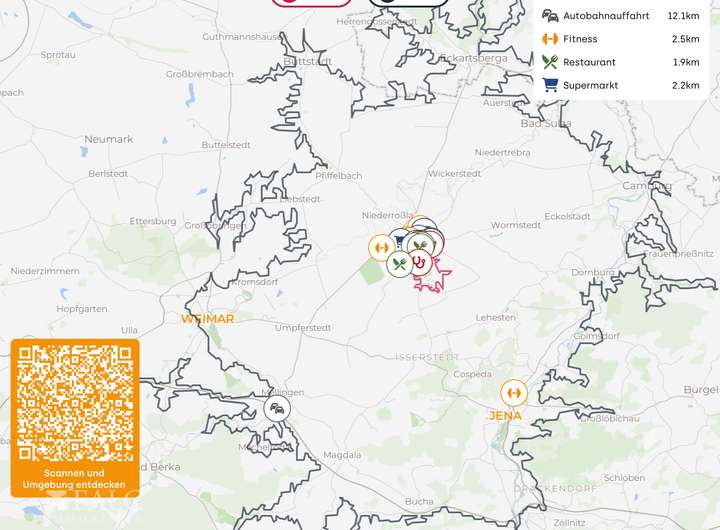 Die Klassikerstadt Weimar mit ihren einzigartigen kulturellen Schätzen erreichen Sie in nur 20–30 Minuten, ebenso Jena mit seiner renommierten Universität, pulsierender Wirtschaft und lebendiger Szene. Auch Erfurt, die Landeshauptstadt, ist schnell erreichbar.
