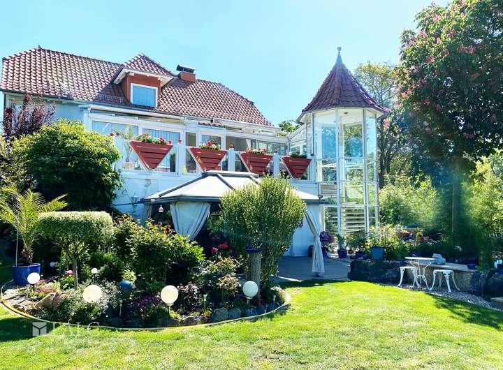 Massivbau mit Unterkellerung, Satteldach und Wintergarten in exklusiver Ausführung