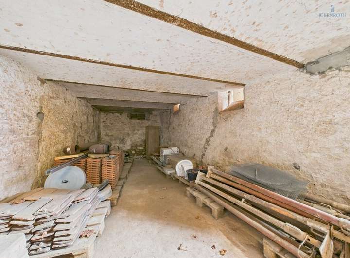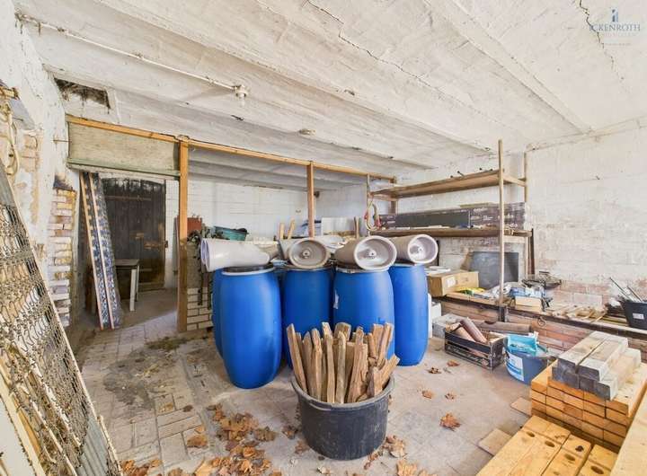 Direkt gegenüber, auf der anderen Straßenseite des Hauses, liegt die große Scheune mit integrierter Garage und einem zusätzlichen Kellerbereich. Einfach sehr viel Staufläche und Nutzungsmöglichkeiten für Sie!