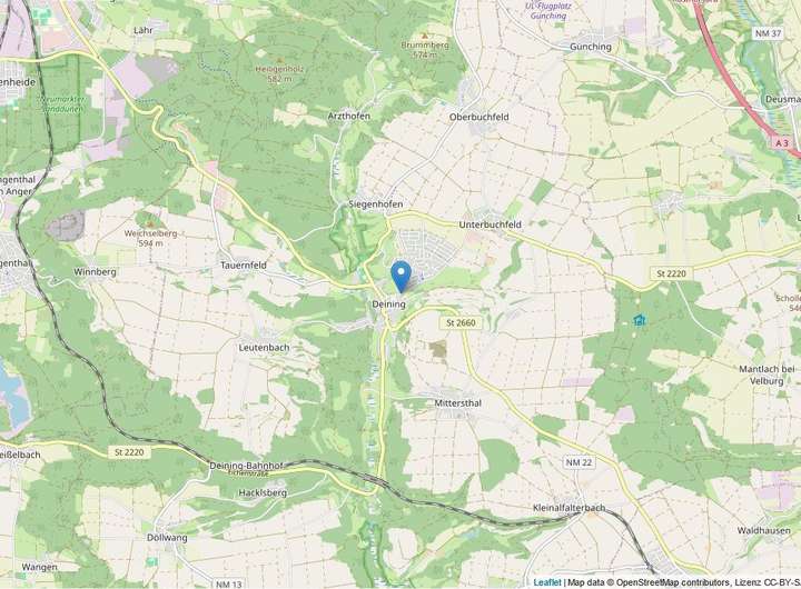Das Grundstück befindet sich in Deining, einer charmanten Gemeinde im Landkreis Neumarkt in der Oberpfalz. Die Umgebung ist geprägt von idyllischer Natur, gepflegten Wohnhäusern und einer freundlichen Nachbarschaft – ideal für Familien, Ruhesuchende und Naturliebhaber.